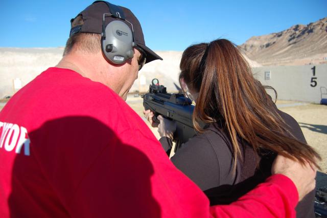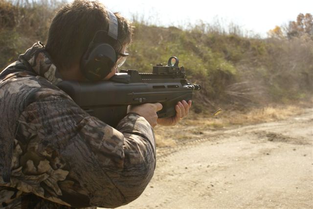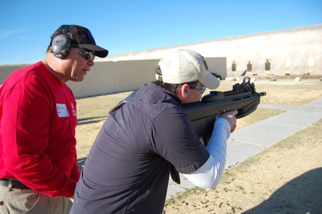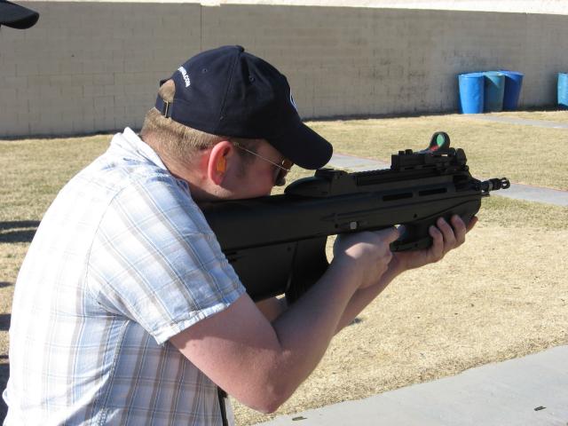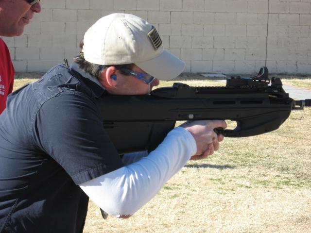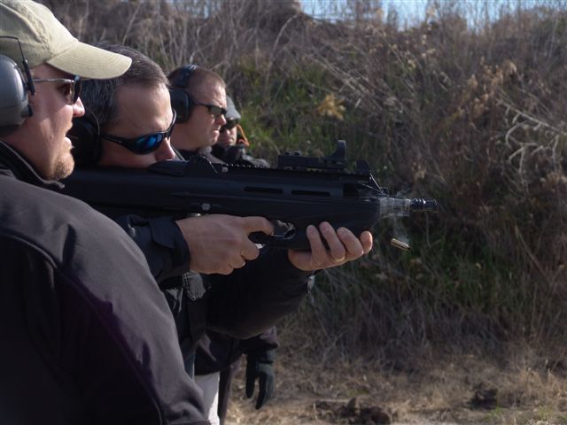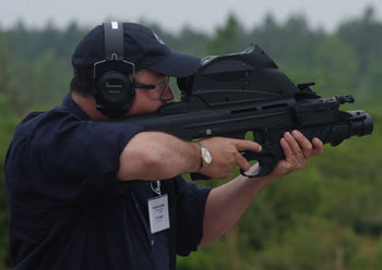 2008年SHOT SHOW上体验F2000射击感觉的记者和军警采购人员,不过据说这次挑出来给记者体验的枪不知道为什么老是卡壳,印象分肯定低了。