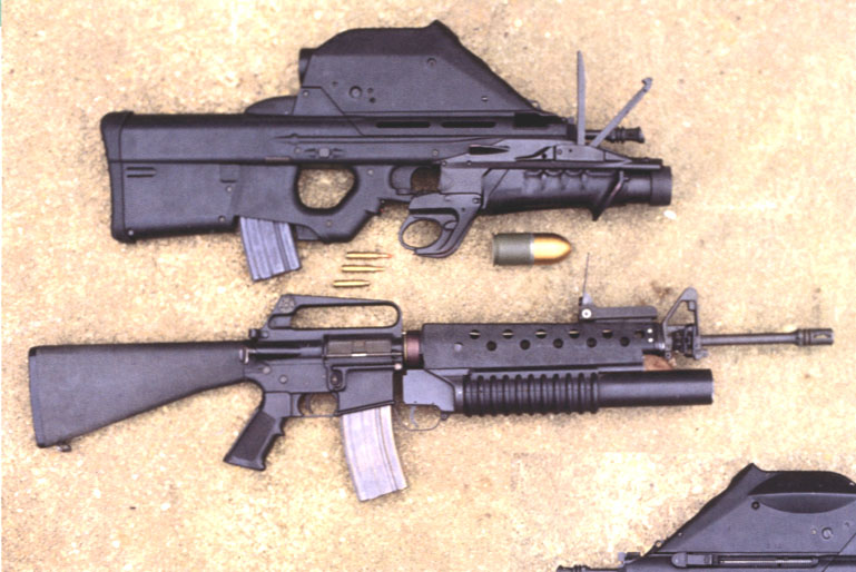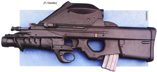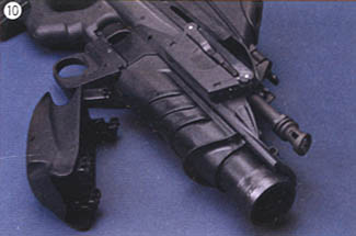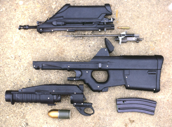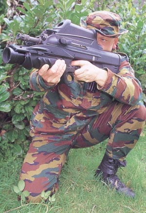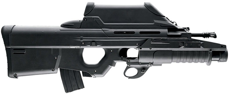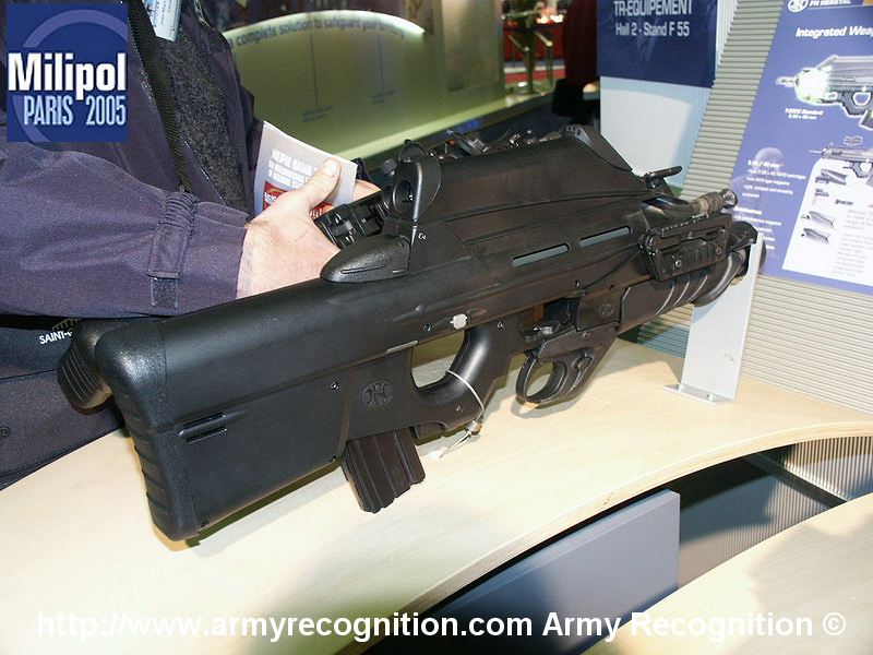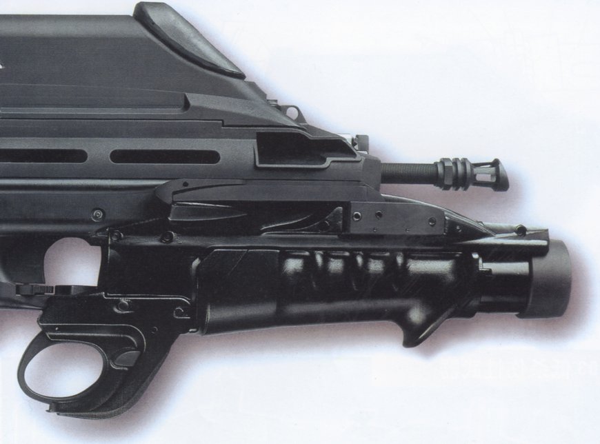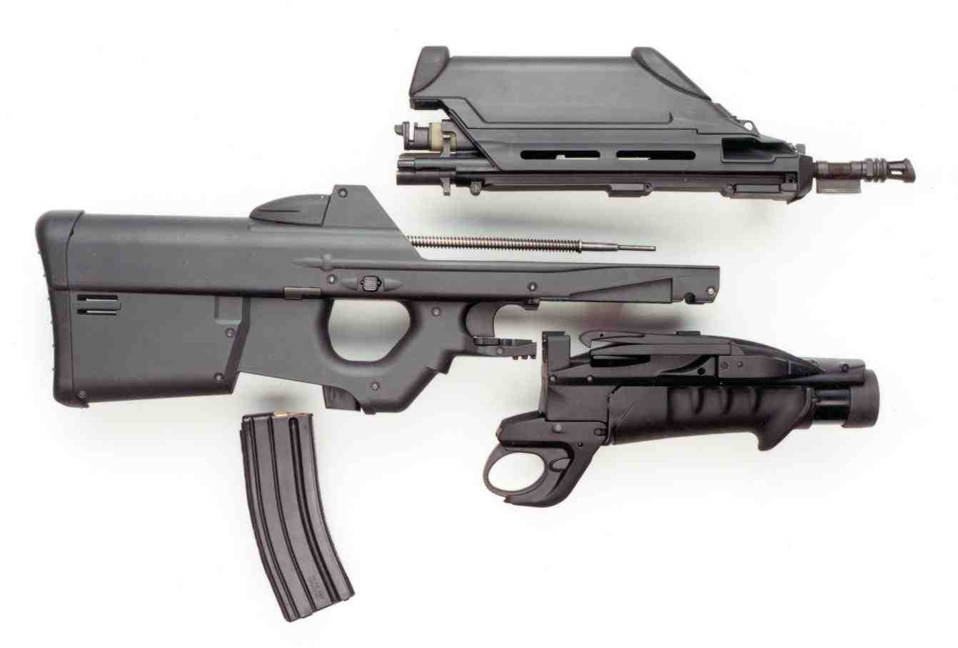 根据需求,F2000的前护木可以卸下,换上一个由FN公司生产的40mm口径的低速榴弹发射器。与常规的下挂式榴弹发射器不同,FN公司的榴弹发射器与步枪的其他部件在外形上构成一个有机整体,装上一个满弹匣后,武器系统的质心恰好位于扳机附近。榴弹发射器的扳机位于步枪扳机护圈下方,很自然就能触摸到。尽管40 × 46mm的榴弹存在局限性,但考虑到如要研制一种更有效的弹药,成本将会增加,也有市场风险,因此FN公司便为F2000保留了40mm低速榴弹发射器。