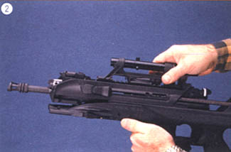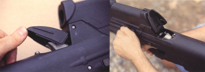 由于没有抛壳窗,F2000专门在弹膛上方增加了一个翻盖,用于打开检查是否上膛