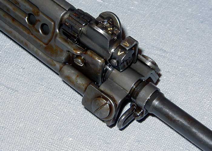 Stg.58独特的枪口装置,可以把铁丝卡在开槽内用实弹冲断铁丝