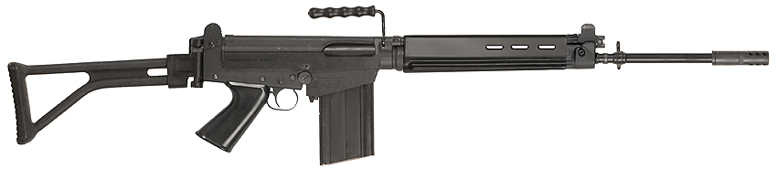 FAL 50.61 —— 标准长度(533mm)的枪管,配折叠枪托的伞兵型。采用翻转式简单照门。