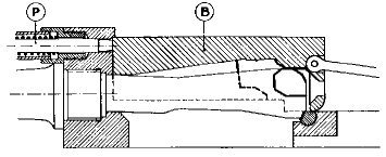 当枪弹击发,弹头通过导气孔时,部分火药气体进入活塞筒中,作用于活塞头,推活塞向后并带动工作部件(机框和枪机)完成后座和抛壳动作,多余的气体则由排气孔泄出。活塞P在向后运动过程中撞击机框B的前端,推动机框后座,活塞簧同时被压缩。当活塞的后座能量消失后,活塞簧就驱使活塞独自回到前方位置。