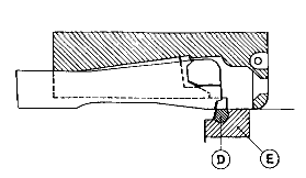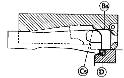 机框的自由后座行程为6.4mm,经过这段空载运动(通称“击发后的机械保险”),机框上的开锁斜面B1与枪机上对应的斜面C1贴合。于是,机框后座就使枪机后端上抬,枪机后下端的闭锁支承面与机匣E中的闭锁支承面D解脱,枪机开锁。