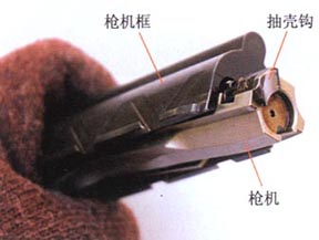 | ⑤用拇指按压击针尾部,把枪机体从枪机框内翻出 | |