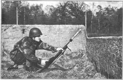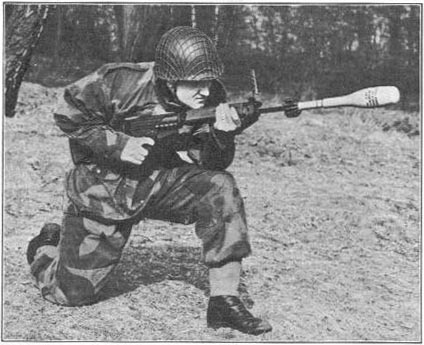 抛射枪榴弹时,枪是倒过来放的。估计是让枪膛轴线更接近地面的受力点