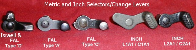 此图中显示了不同国家的FAL的保险/快慢机柄形状稍有区别