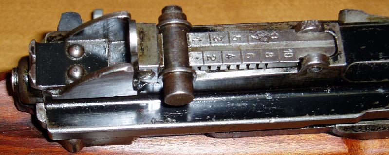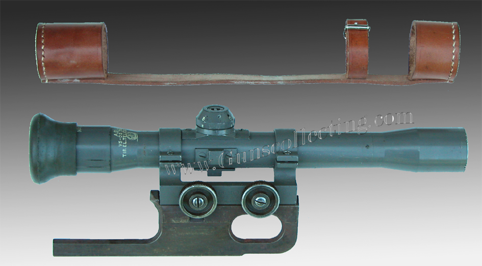准星装在导气箍上并有两侧护翼保护,照门觇孔式,装在机匣后面,可调整高低和风偏。表尺射程达1000米,每100米为一个增量。如果是在机匣左侧锻压有瞄准镜架安装座的型号上,可用螺栓固定一个瞄准镜架。