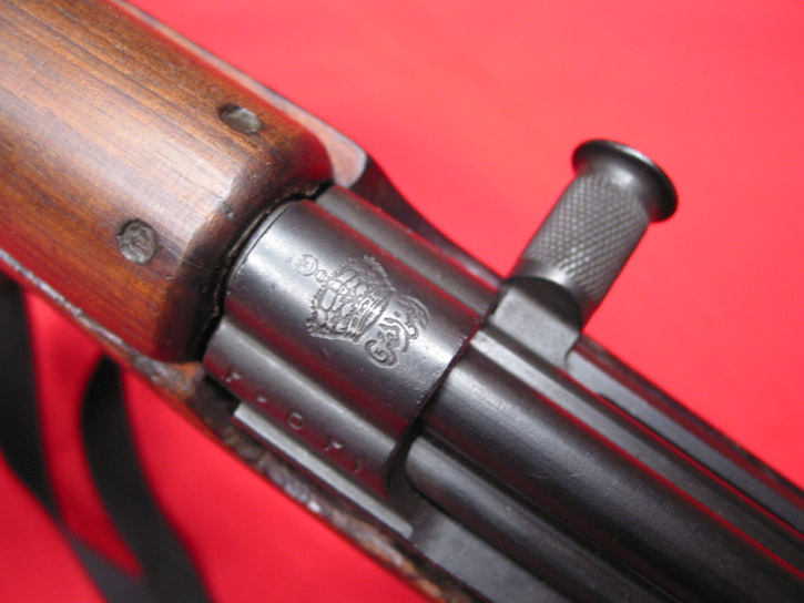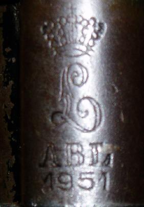 机匣顶部的标记及铭文,显示这是1951年生产的比利时型步枪