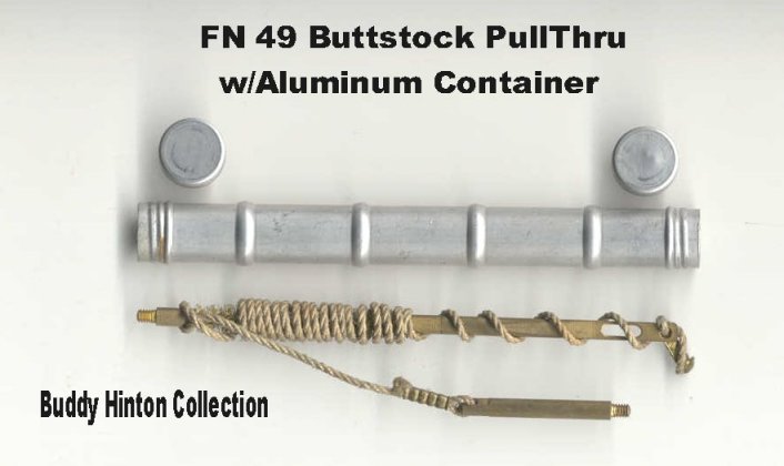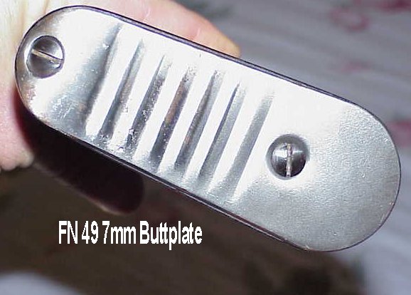 FN-49整体式枪托是用胡桃木制成,分上下两半,下护木有一个半手枪形握把。FN-49的狙击型在枪托上配有木制贴腮块。在FN-49上至少有5种类型的枪托底板,例如委内瑞拉型的托底板是冲压有防滑“皱纹”的钢制底板,而没有凹陷形状;埃及型FN-49步枪上的托底板是有凹陷的黄铜式;哥伦比亚的FN-49步枪有多种不同的托底板,包括一种较罕见的橡胶式。其中一些型号的底板上有铰链式盖板,其枪托内有附件室,存放维护工具、一个备用击针和枪口帽扳钳等。