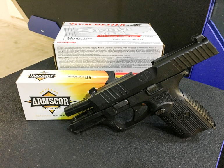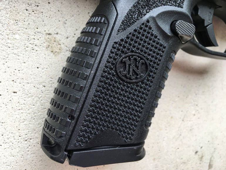 中等尺寸型(Midsize),长度与全尺寸型一样,但握把比较短,其实是相当于其他手枪的半紧凑型(Semi-compact),只是FN给它取名叫中等尺寸型。因为握把短,所以容纳短一些的15发双排弹匣;