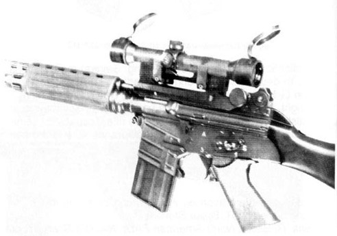 准星为圆柱形,表尺采用翻转式觇孔照门,有两个位置,对应的射程分别为0~250米和250~400米。消焰器是一个扁平的圆筒,其前端两侧各有三个斜孔,在消焰的同时能使一部分火药气体向后喷,因而兼有制退的作用。该消焰器还用作枪榴弹发射插座,枪榴弹套于消焰器上,并靠枪管前端凸起的圆环定位。