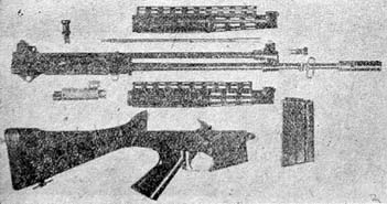 CAL步枪的分解方式和一般猎枪大致相同。推出快慢机后面的紧定销,枪托即向下打开,露出枪尾,然后分解出枪机、机框、活塞,最后取下前托,卸下枪管.通常擦拭时无须卸下枪管。