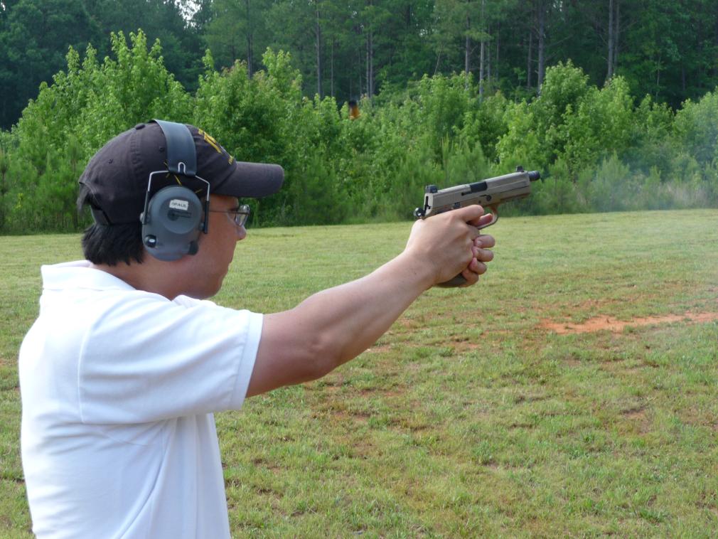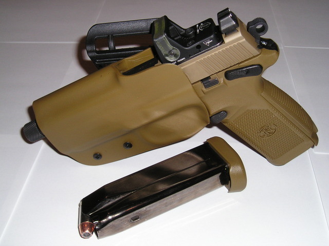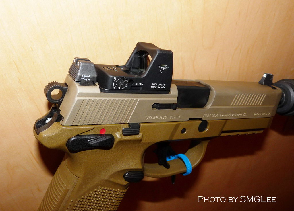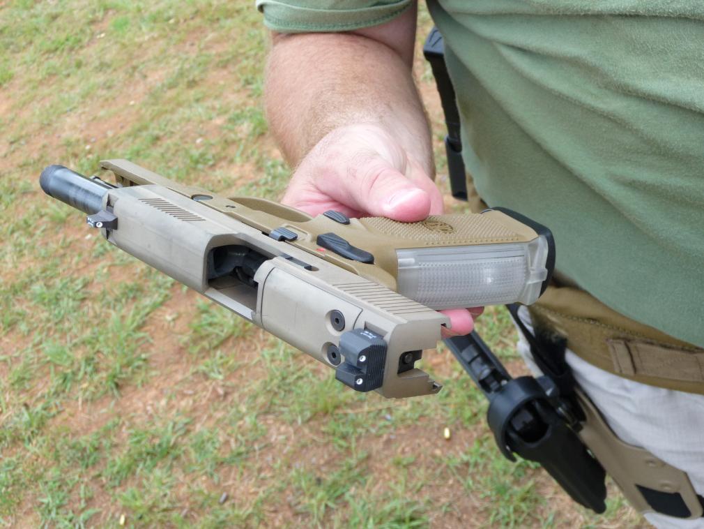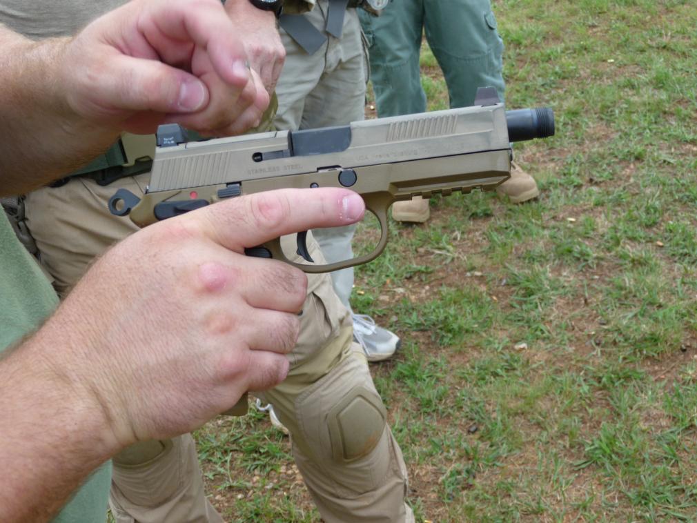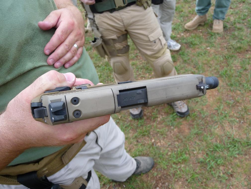 在m4carbine.net上有一个叫Larry Vickers的人在08年8月初搞的一个卡宾枪和手枪射击交流/训练活动中出现的FNP-45战术型