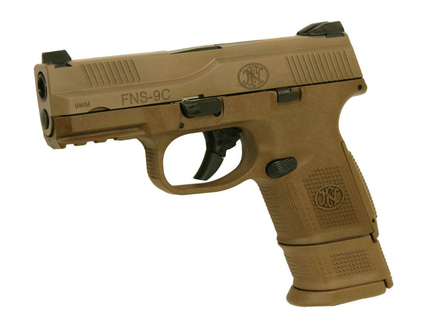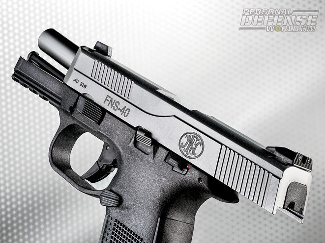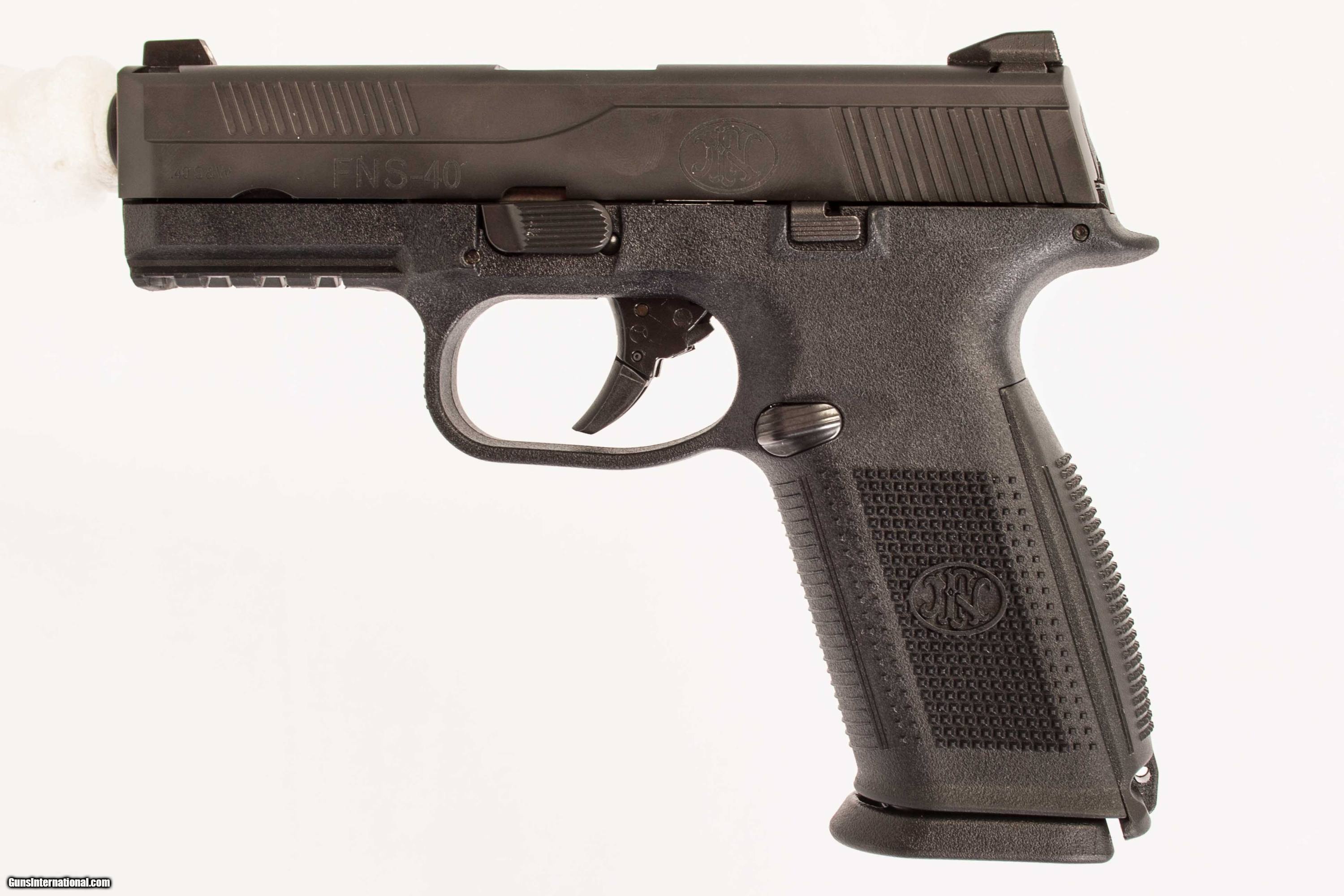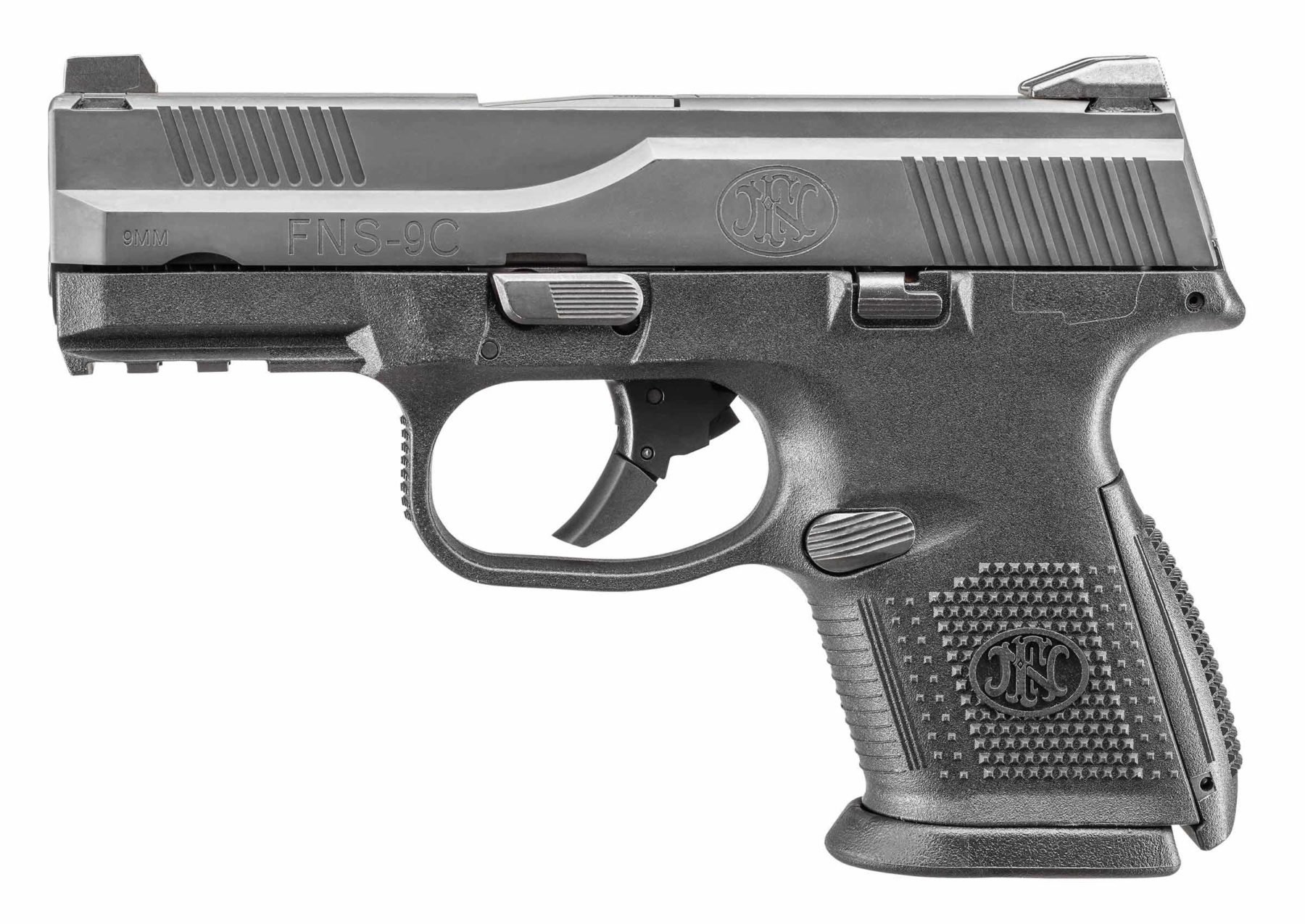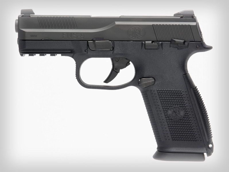 FNS系列手枪是FN公司在2010年10月在欧洲推出的新产品,该枪实际上是以2008年就停产的40-9式手枪为基础,增加了类似于瓦尔特P99的铰接式扳机保险,但可与FNX系列手枪通用弹匣。除此以外,FNS系列在外形特征、尺寸和结构上与40-9手枪基本相同。最初在欧洲推出的只有9mm口径的FNS-9型,在2011年又增加了.40口径的FNS-40型,且开始投放北美市场。然后又先后推出了较短的紧凑型(Compact)及长枪管的加长型(Longsilde)。