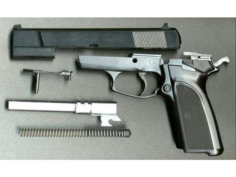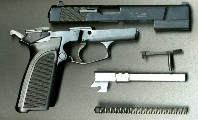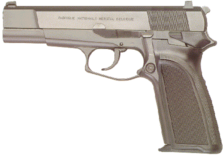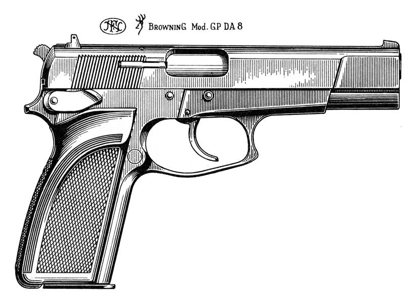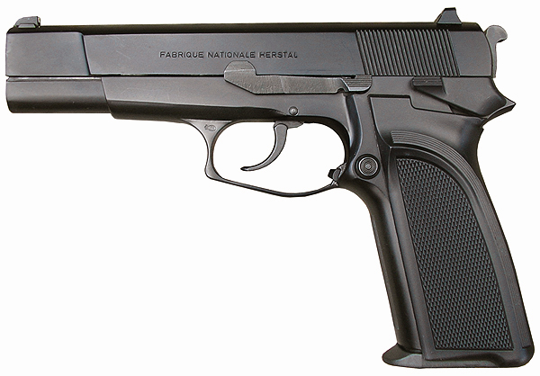 早期的HP手枪只能单动击发,随着时代变迁,双动手枪日益流行,FN公司决定把HP手枪改进为双动击发。最早的双动型HP手枪在1983年推出市场,该枪有两个名称,在美国市场上称之为“勃朗宁双动(Browning Double Action)”或简称BDA,而在欧洲市场上则称为或“大威力双动”,或简称FN HP-DA。由于采用单/双动击发机构,因此这种新一代的HP手枪在底把上安装的是待击解脱杆,而非手动保险。增加了自动击针保险,扳机扣压到一种程度才会让开击针通道,这样可防止手枪跌落或受碰撞后走火。与原来的型号相比,还减小击锤尺寸,改变扳机护圈的形状,使之便于双手持枪。套筒前端部分的形状也稍有不同。另外弹匣容量增加了1发,现在为14发。