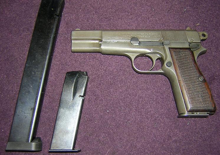 最初FN生产的HP手枪只有两个型号:一种是固定瞄具型的“普通型”,另一种是可调表尺型,且配有可安插在握把上的木制枪托,该枪托同时也是枪套。虽然枪托式枪套在二战期间停止生产,所以后来生产的HP手枪也取消了握把背部的枪托结合槽,但可调瞄具型大威力手枪仍然可从商业型获得。现在生产的HP手枪有更多种类的瞄具,而且还可以让用户更换三点式之类能够在夜间使用的战斗瞄具。