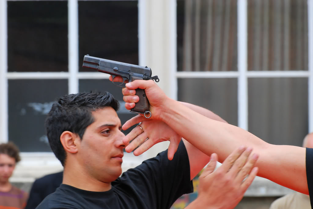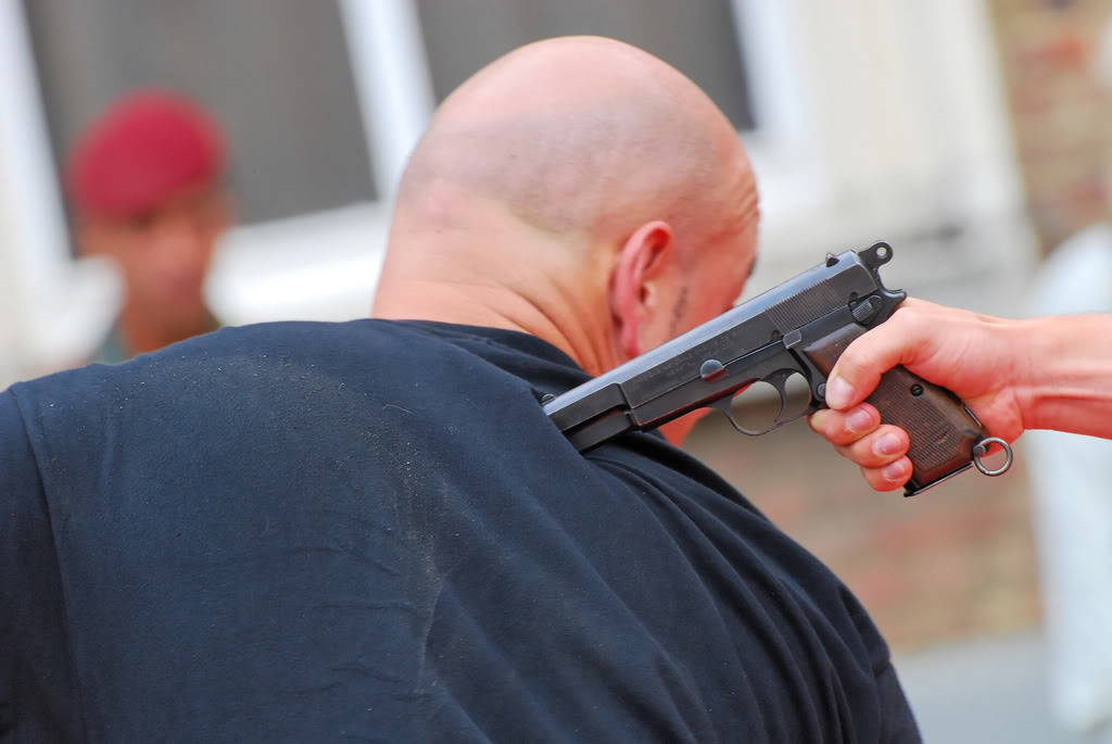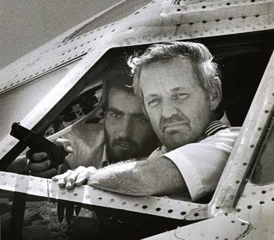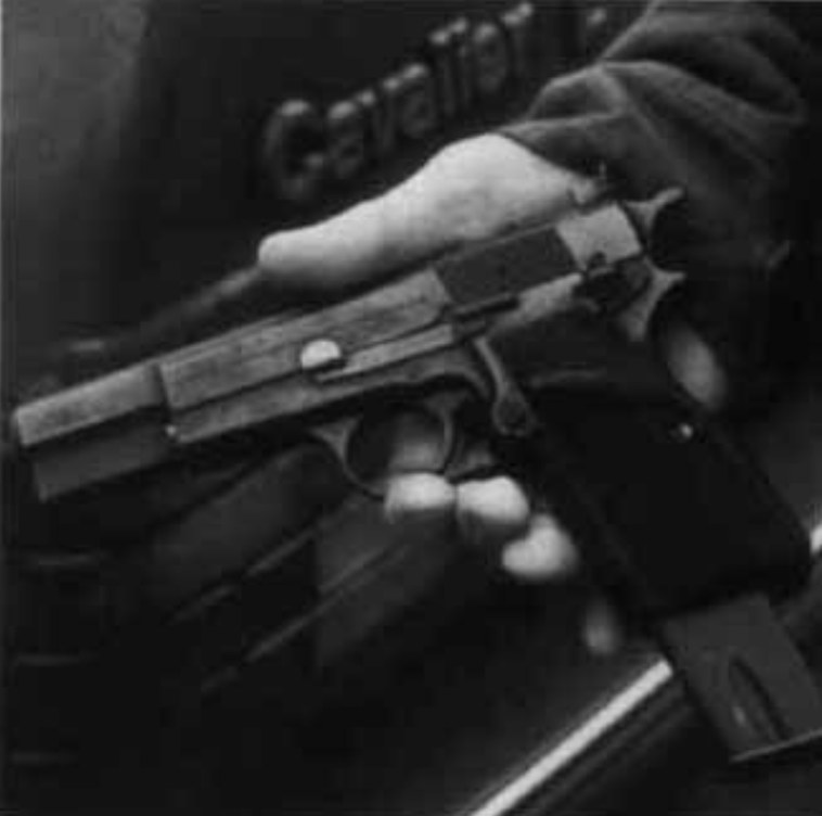 1985年6月环球航空847号航班贝鲁特劫持事件中,机长约翰·特斯特雷克将头探出驾驶舱外,后面的劫机者手持HP手枪