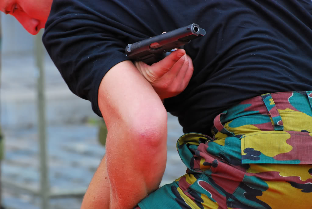 一把英国第14情报连所装备的L9A1手枪,清晰显示使用了20发弹匣
