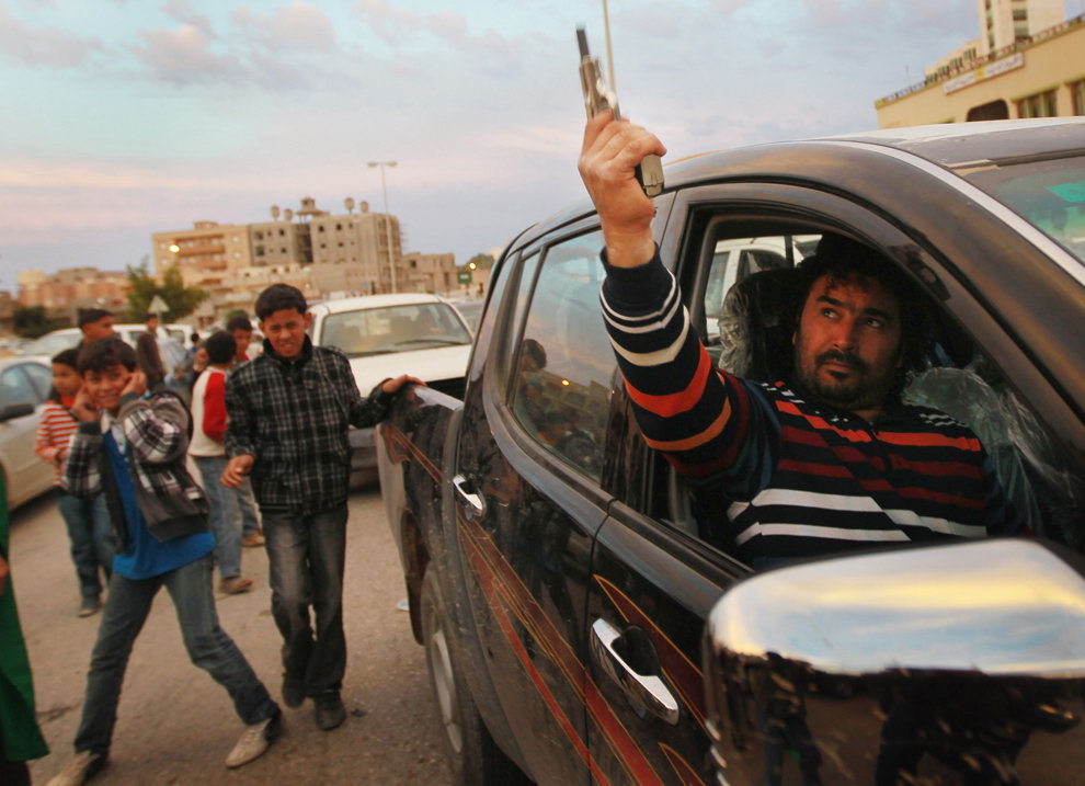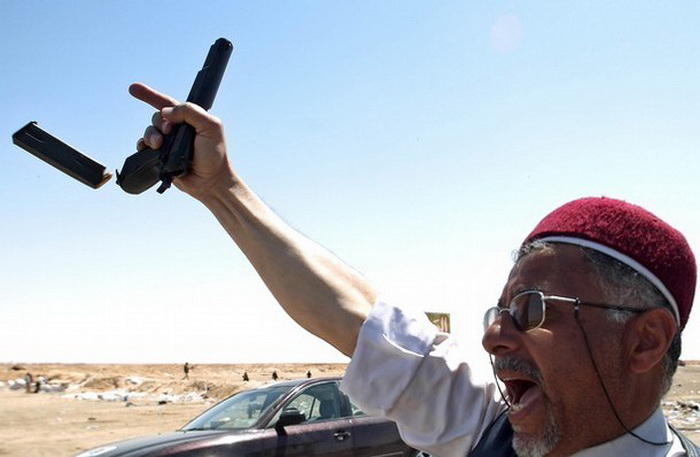 ![]() 利比亚内战中用HP手枪打飞机的平民 |