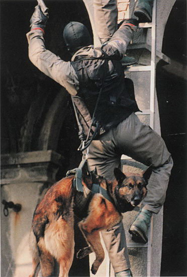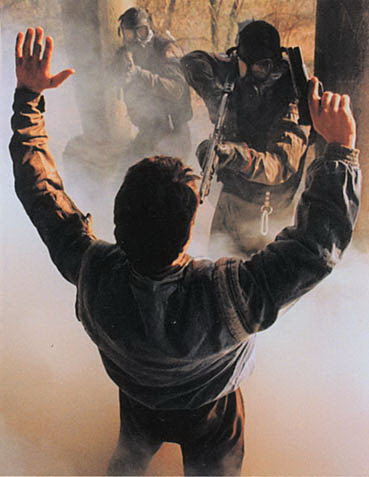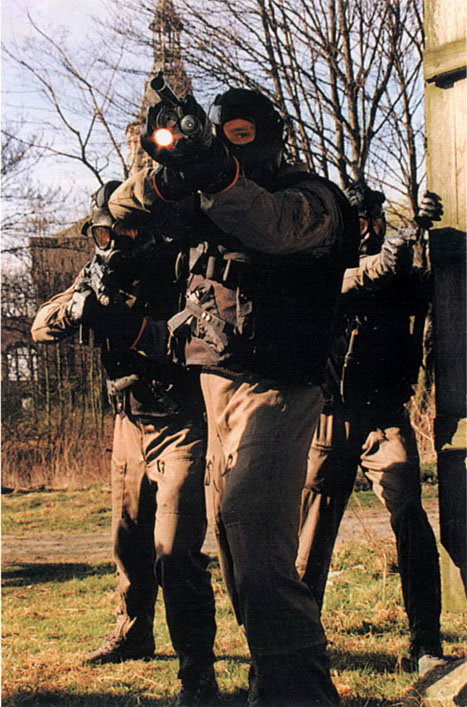 进行火车反劫持人质演习中的SAS,中间一人枪套里的L9A1手枪上明显使用了20发加长弹匣