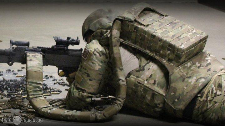 TYR公司生产的HRN-MICO背负式弹箱,前身是为MK48而设的IRONMAN系统,量产型也可在M240上使用,里面的弹箱可携带500发弹链,柔性输弹带里可再额外携带75发弹链