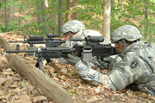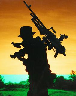 目前美军研制的M192轻型三脚架也可以安装到M240上使用,重量只有5.2公斤,比MAG原配的三脚架更轻。