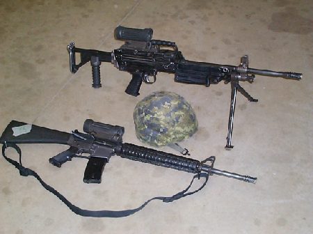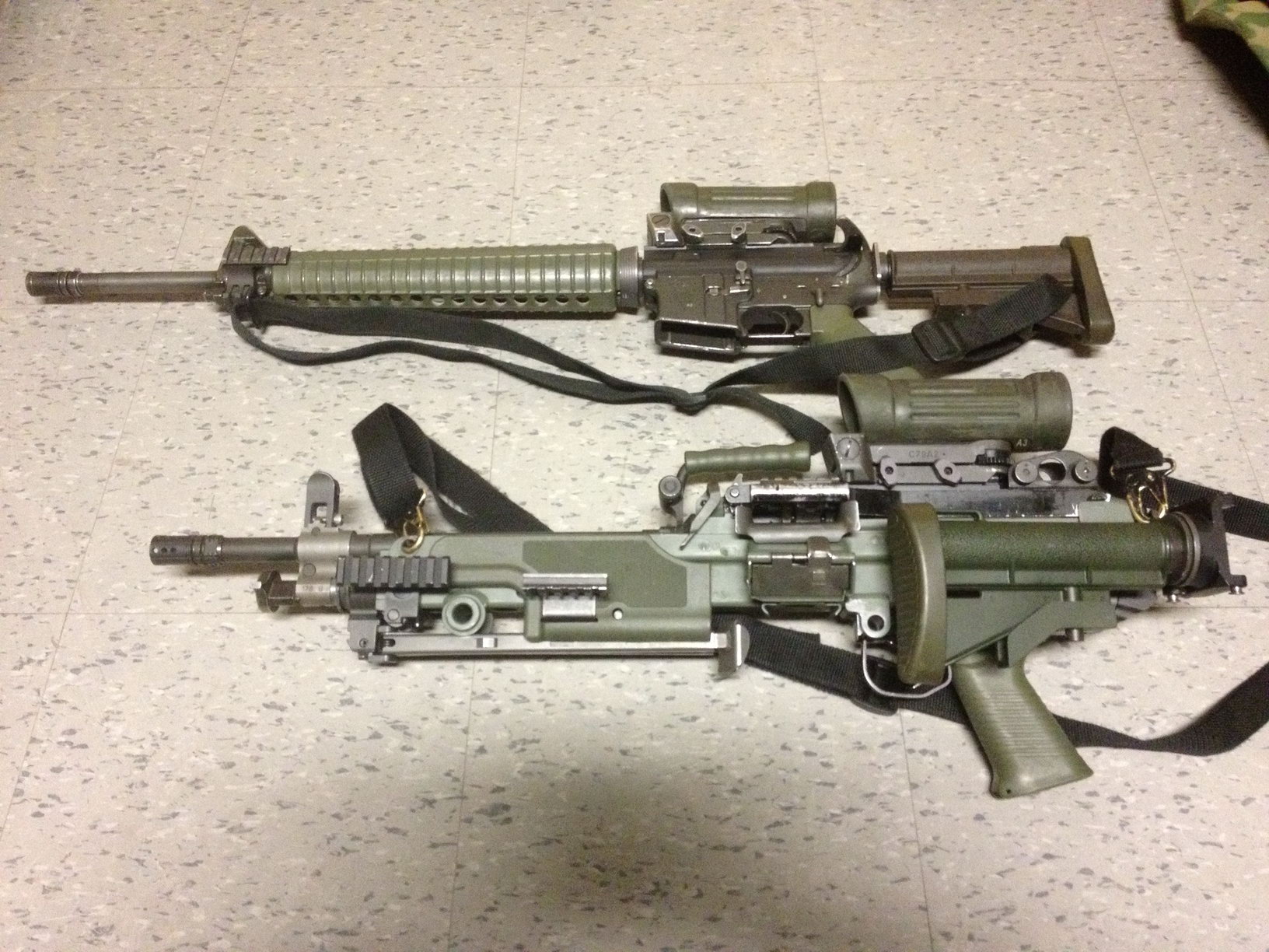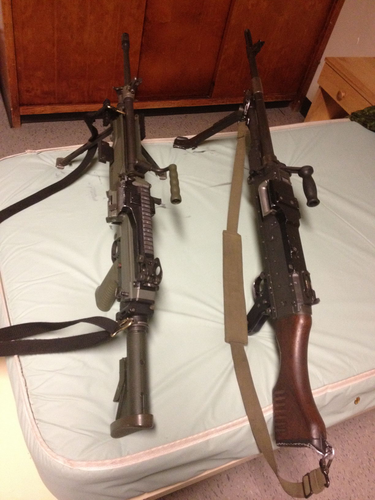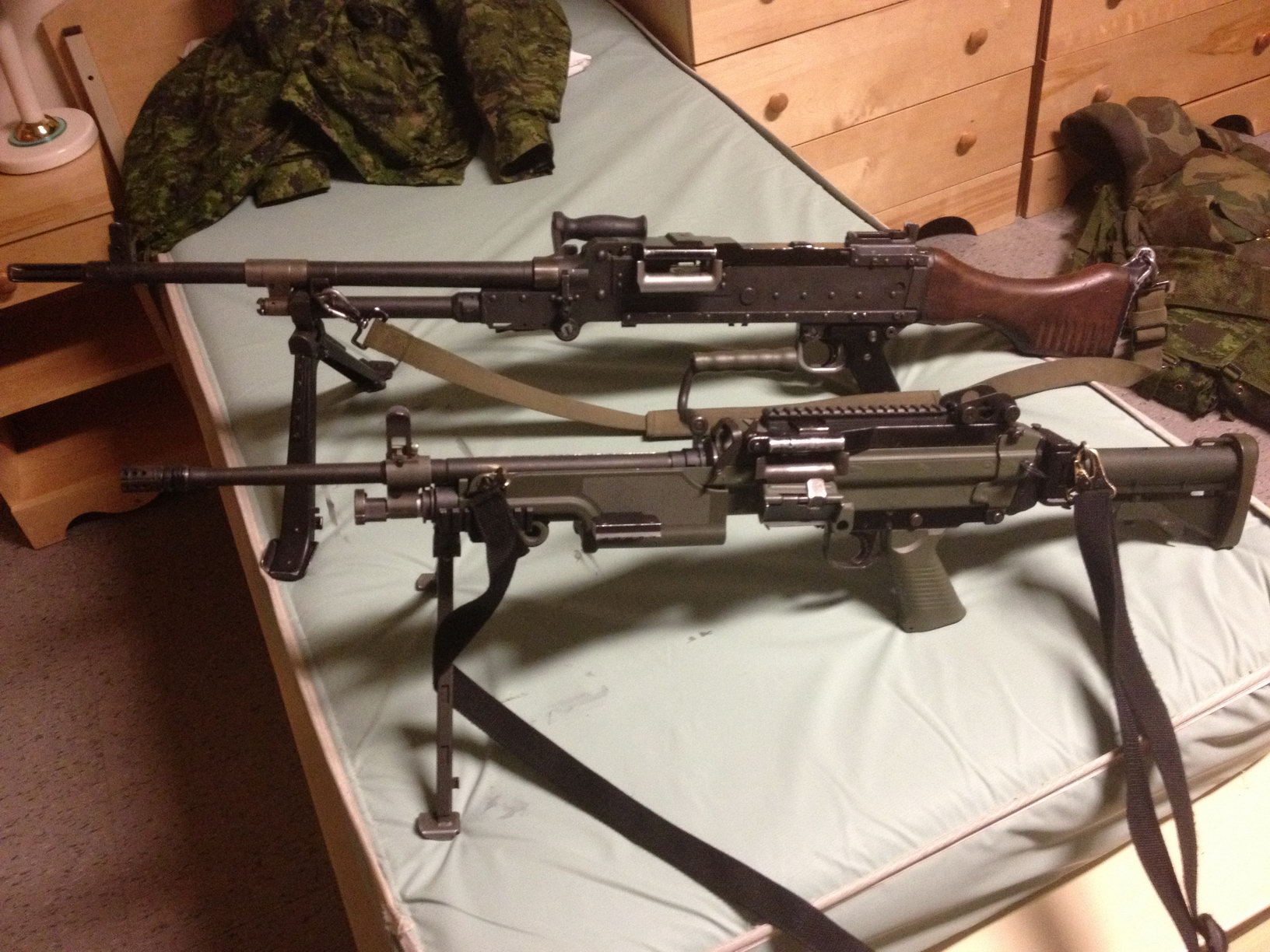在加拿大陆军服役的网友@黑水雇佣兵提供的照片,这是C7A2与C9A2的比较,即使换上短枪管也是比C7A2要长