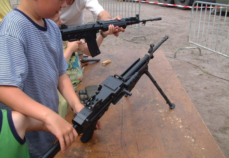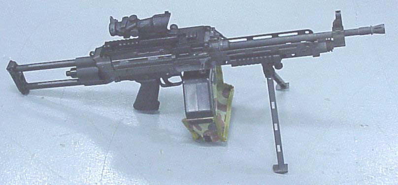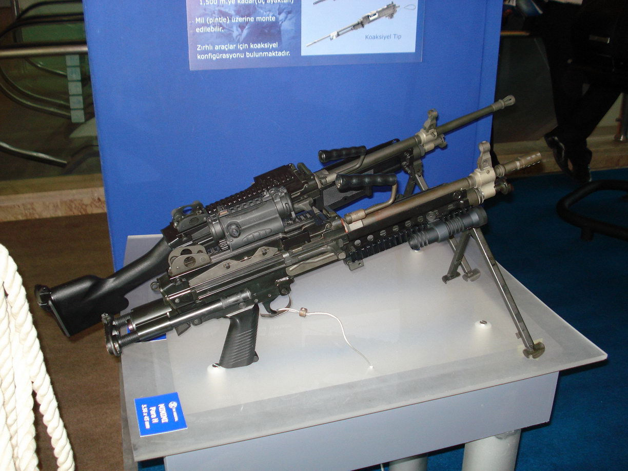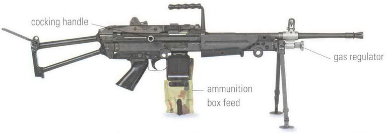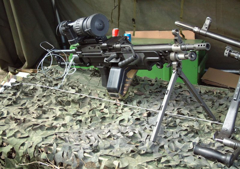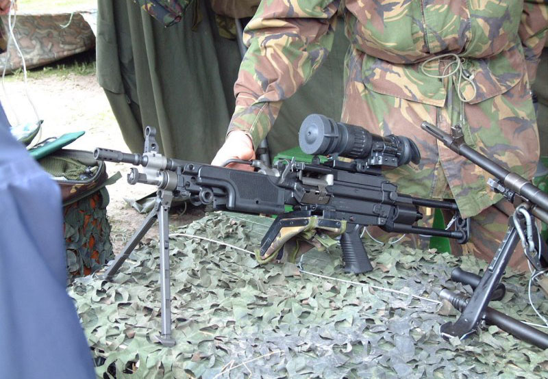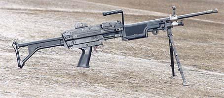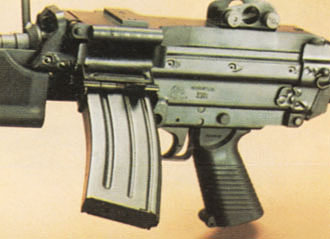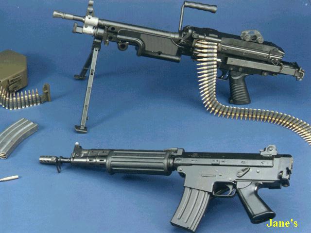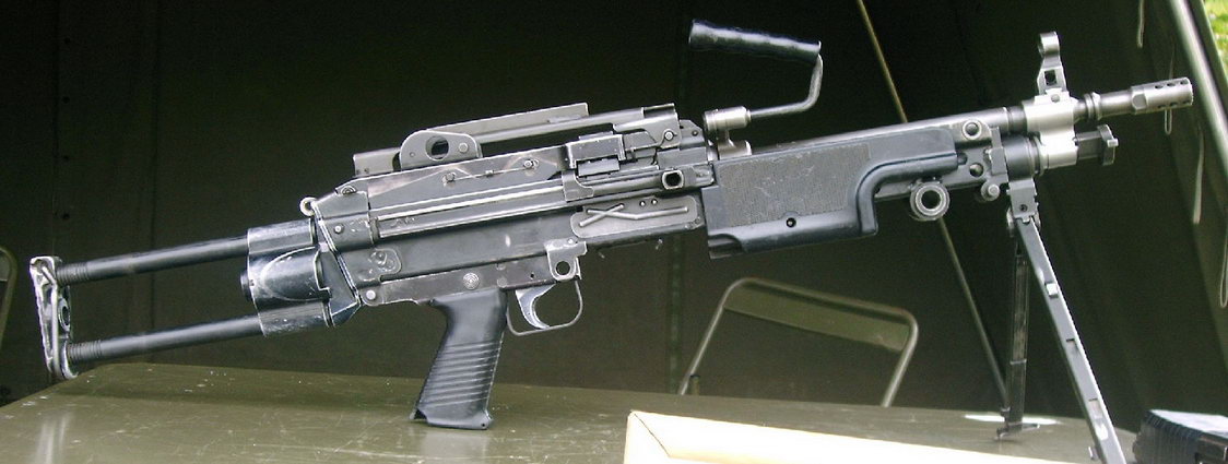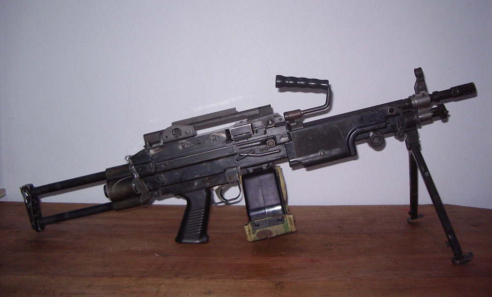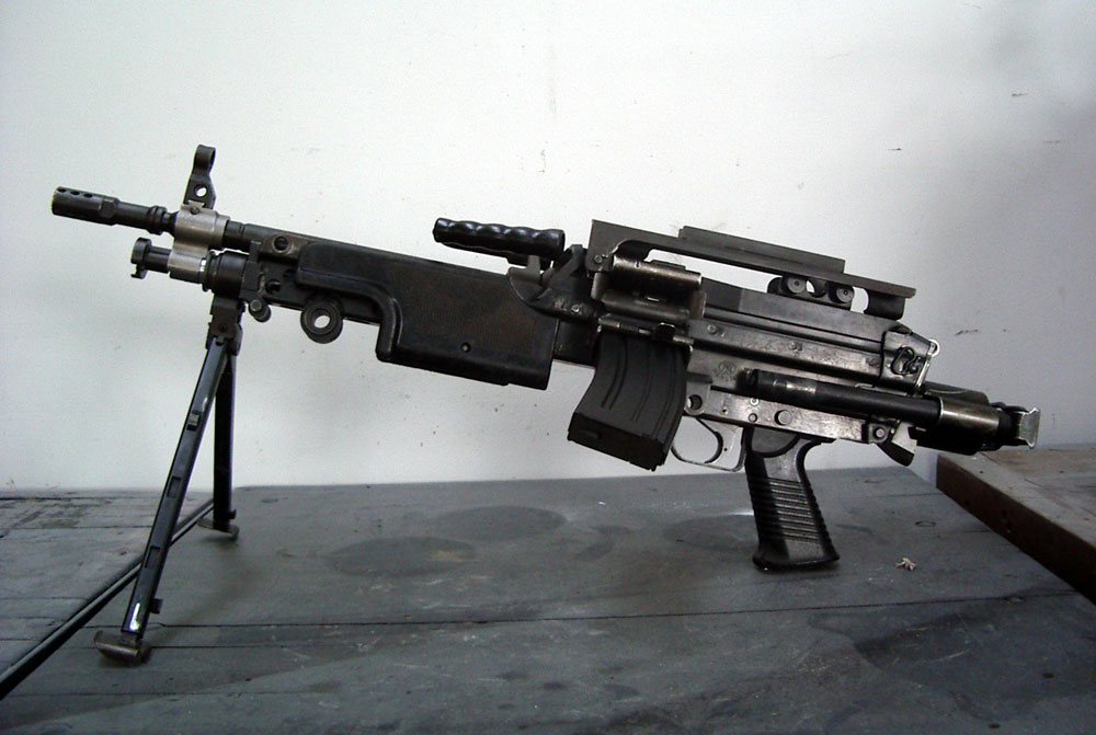 “米尼米”(Minimi)机枪是FN公司于1970年代初研制的机枪,是FN公司开发的第二种5.56mm NATO口径的轻武器,第一次公开露面是在1974年,其后参加了美国陆军班用自动武器(Squad Automatic Weapon,简称SAW)选型试验,在1977年与FNC一起参加了北约组织下一代步枪选型试验。1982年2月1日,美军决定采用Minimi(试验编号XM249)作为SAW型号,正式定名为M249 SAW,首先配发给美国陆军和海军陆战队的步兵作战分队。