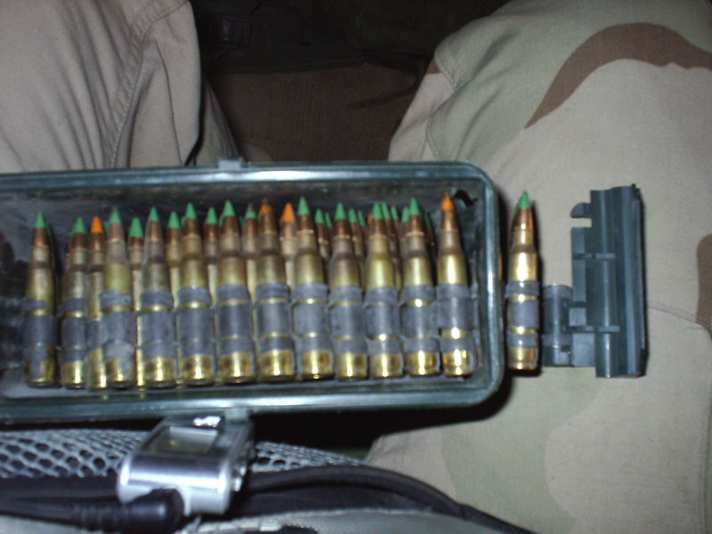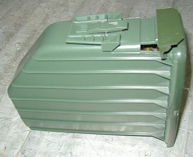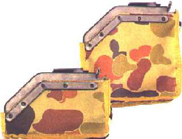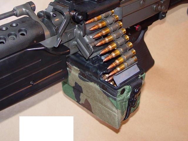当采用弹链供弹时,为方便携带(尤其是冲锋陷阵时),FN公司设计了一种既是供弹具也是存放枪弹的盒形弹箱,弹箱配用美国M12型可散弹链,可装200发枪弹。取下弹箱左侧盖板,可以将弹链装入弹箱内。将弹箱夹在机枪的供弹机下方,就成为枪整体的一个部分。后来又为美军设计了一种软式的弹袋,有100发和200发两种容量。由于弹箱是用塑料整体压铸而成,成本低廉,坚实耐用。几个弹箱可堆放在一个手架上,以便于运输。