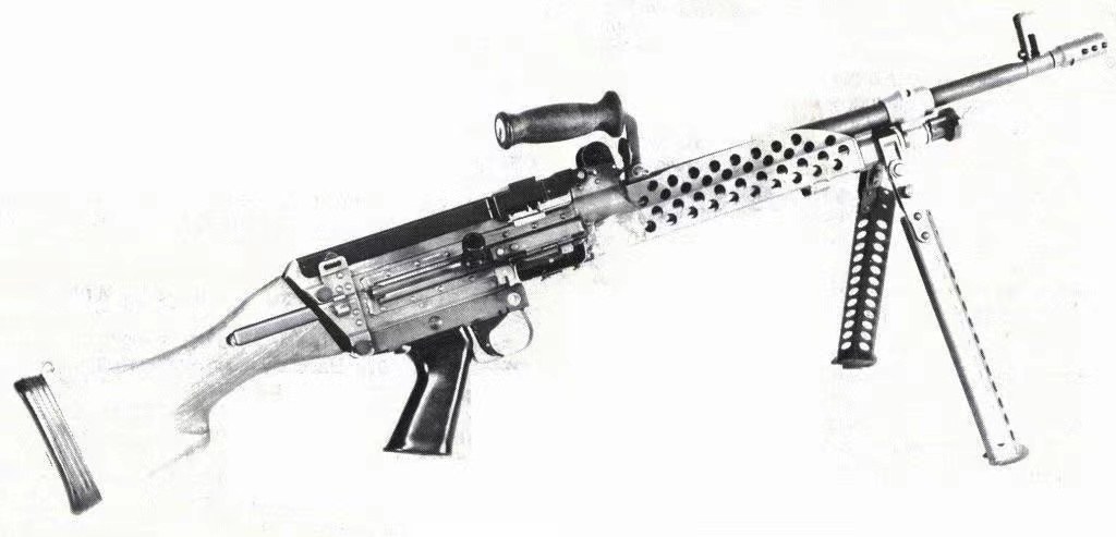 参加北约选型试验的1977型Minimi,注意其枪托形状与后来量产型的区别。