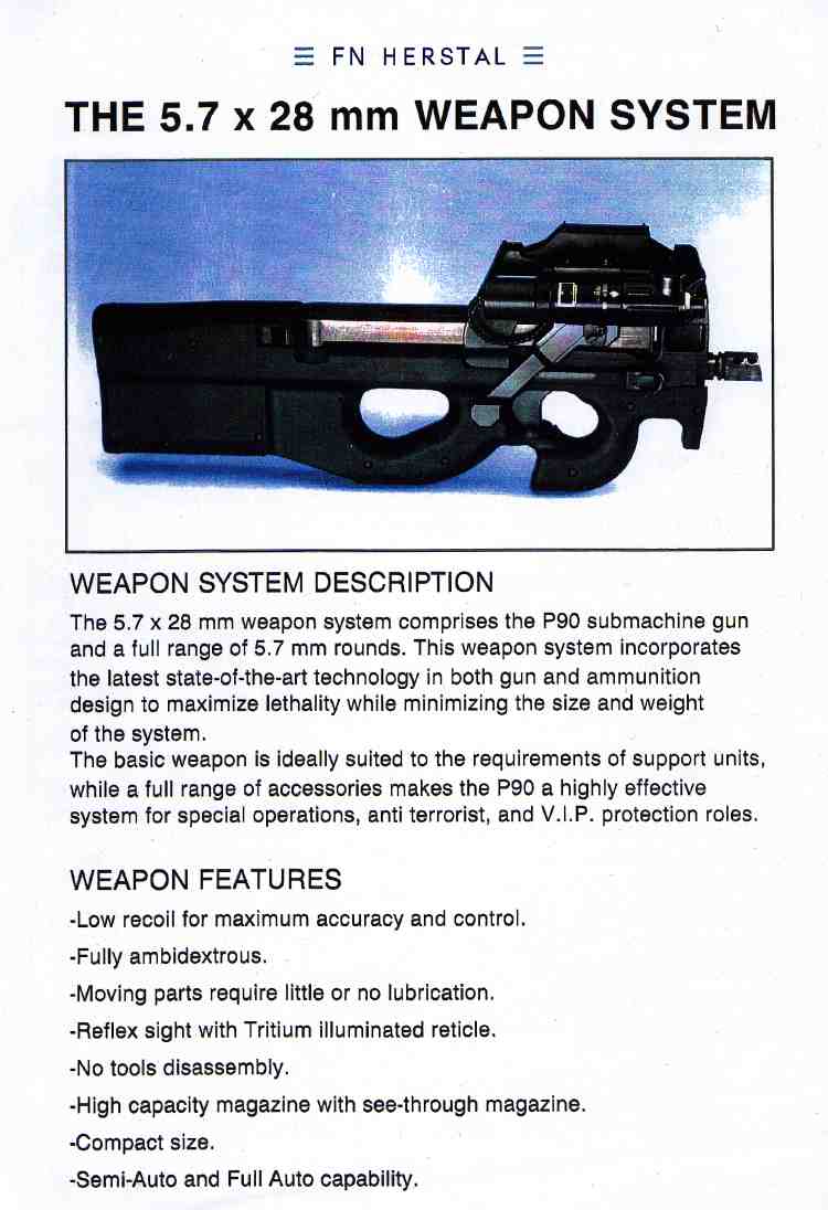 | 开发背景 | 结构特点 | 目前状况 | P90 STD | P90 TR | P90 TAC | PS90民用型 | 瞄准装置 | 5.7mm弹药 | 图片集 |