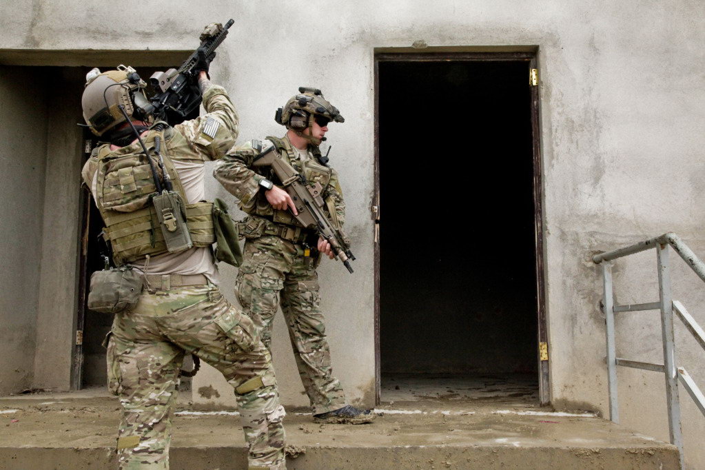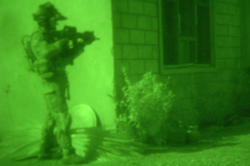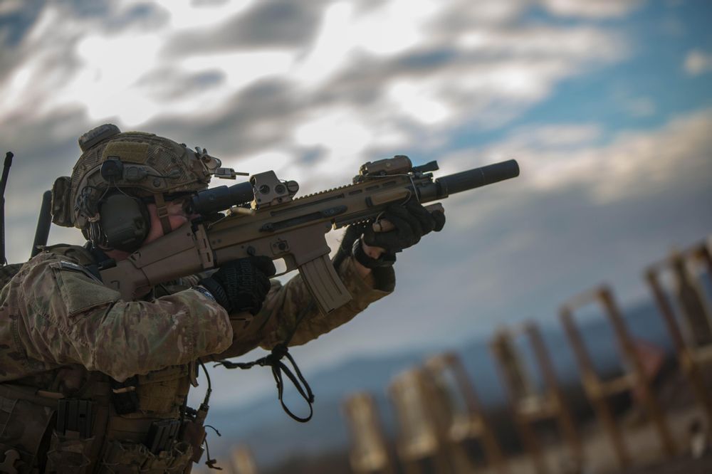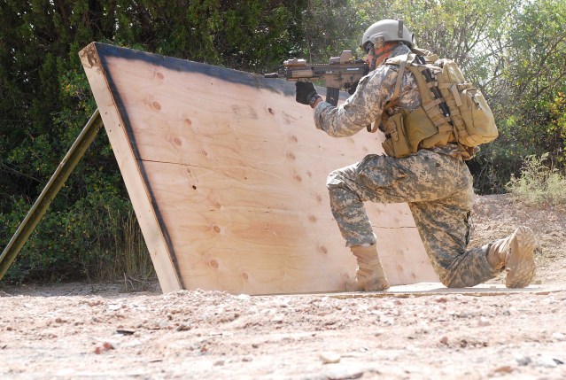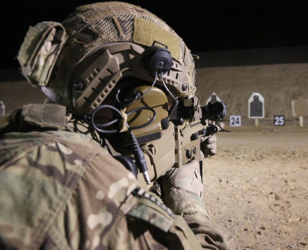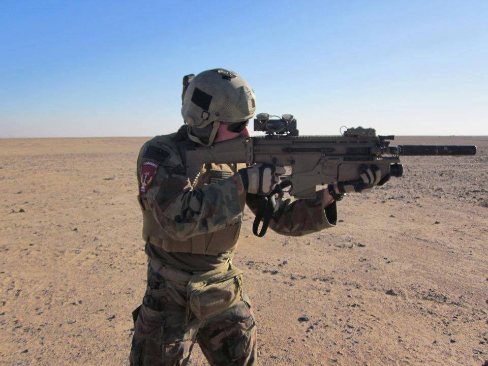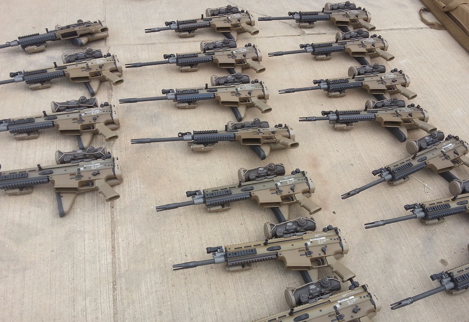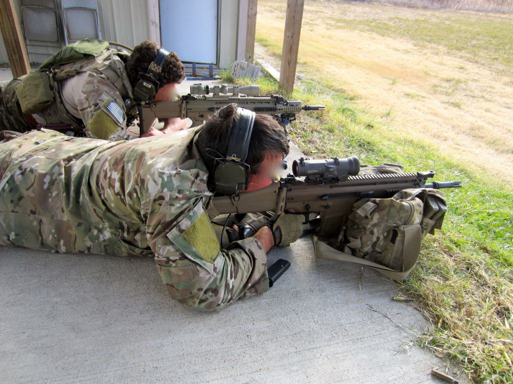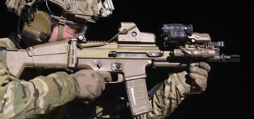 较少见的实际使用中的SCAR的空包弹助退器,这是2013年4月28日在喀布尔进行演习的美国陆军特种部队