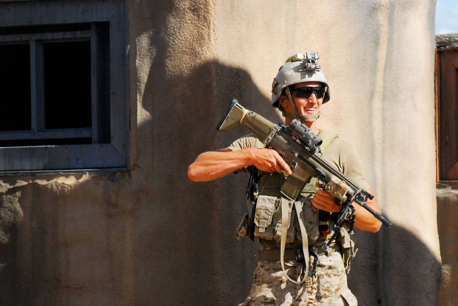 这名陆战队Raider士兵使用5.56口径的MK17安装了标准型枪管