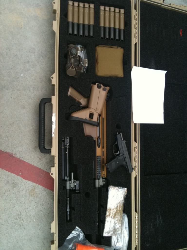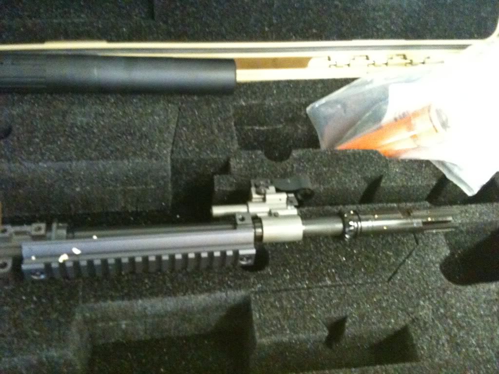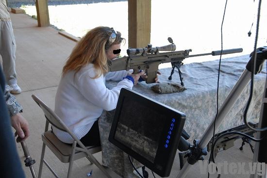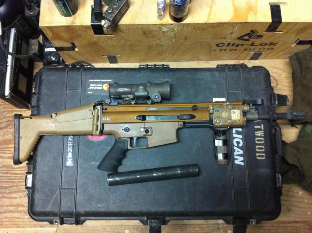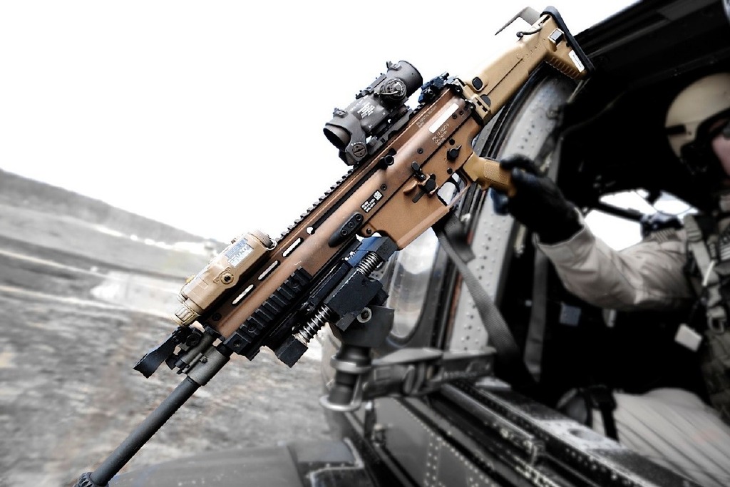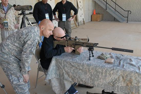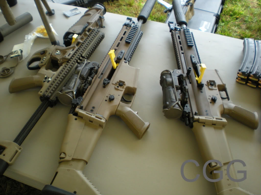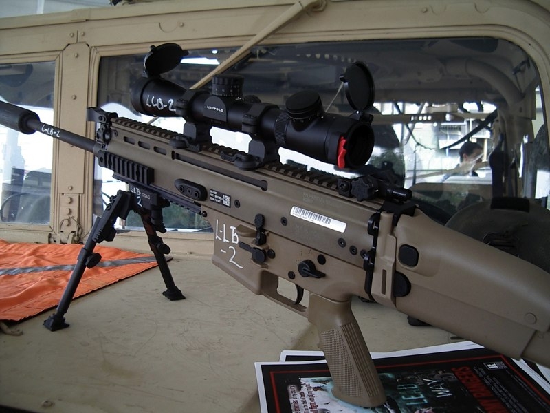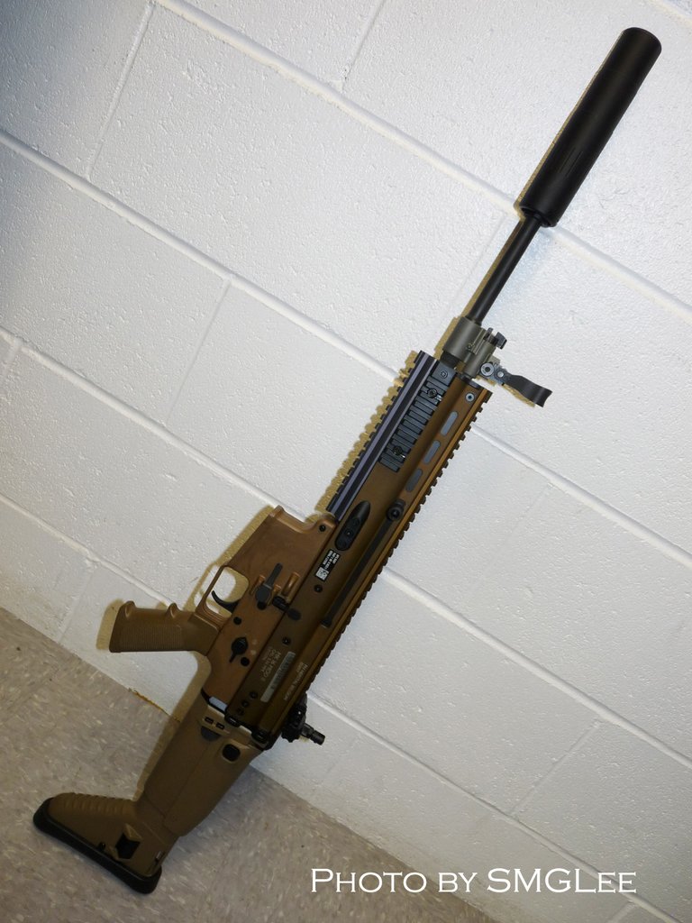更换了SCAR25下机匣的Mk17,这样就可以直接通用Mk11或M110的弹匣,此枪还安装了延长导轨