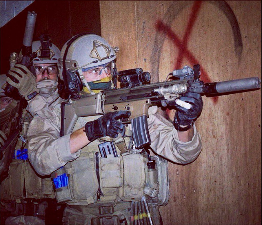 也是2012年在阿富汗的海豹,这是用了加长护木的Mk17 STD,因此看起来露出的枪管较短