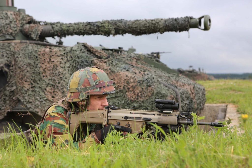 装备SCAR-L,2020年3月初在街头巡逻以执行保持社交距离(封城的另类说法)的比利时军队
