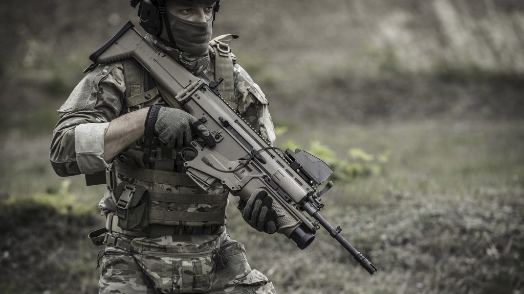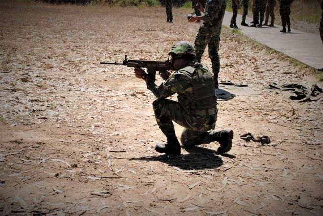 2019年葡萄牙军队装备的SCAR,注意,其在枪管上增加了刺刀座