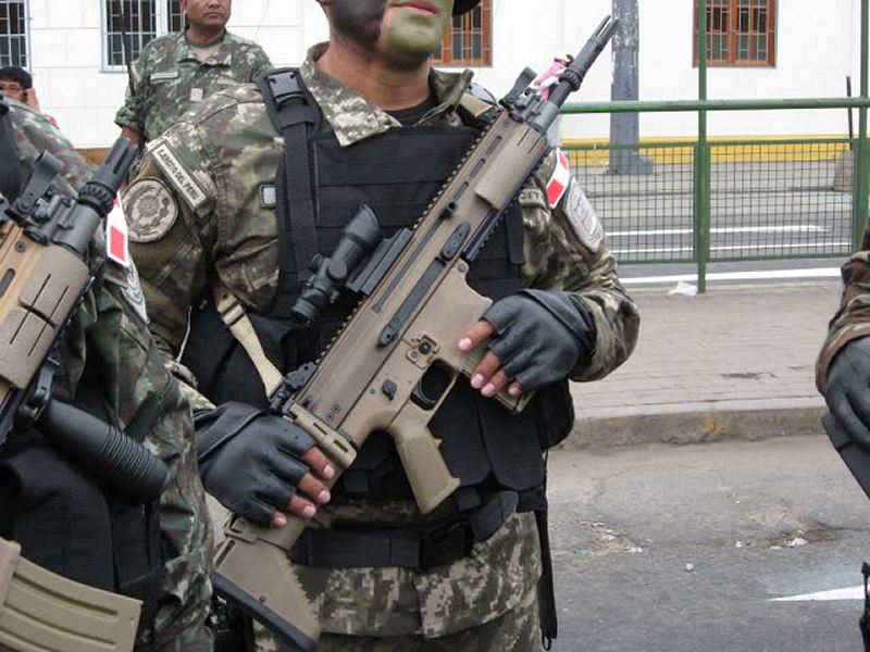 ![]() 2012年秘鲁阅兵式上有黑色的SCAR |