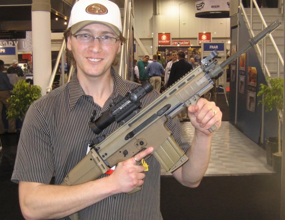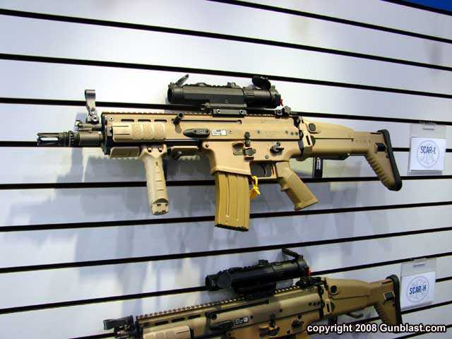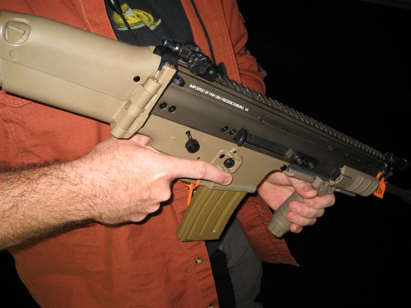 最近Timothy Yan参加了FN公司在SHOT Show 2008举办的射击体验会,我从他那里得到的一些消息是SCAR-L民用市场的售价预定在1400美元,而SCAR-H为2000美元(不过实际上市后SCAR-16S的零售价回落到正常水平也大约在2400左右)。他试射过后,认为SCAR打得很准,枪操作起来很顺手,扳机感特别好,但不知道是不是专门为这次试射而专门调整过扳机扣力,如果量产出来的枪都有这么好的扳机,一定会很受欢迎。SCAR-L的点射散布很密集,而SCAR-H在点射时的枪口上跳和其他同口径步枪差不多,但感觉要好一点点(至少与FAL相比)。