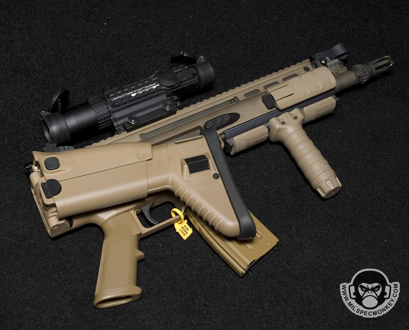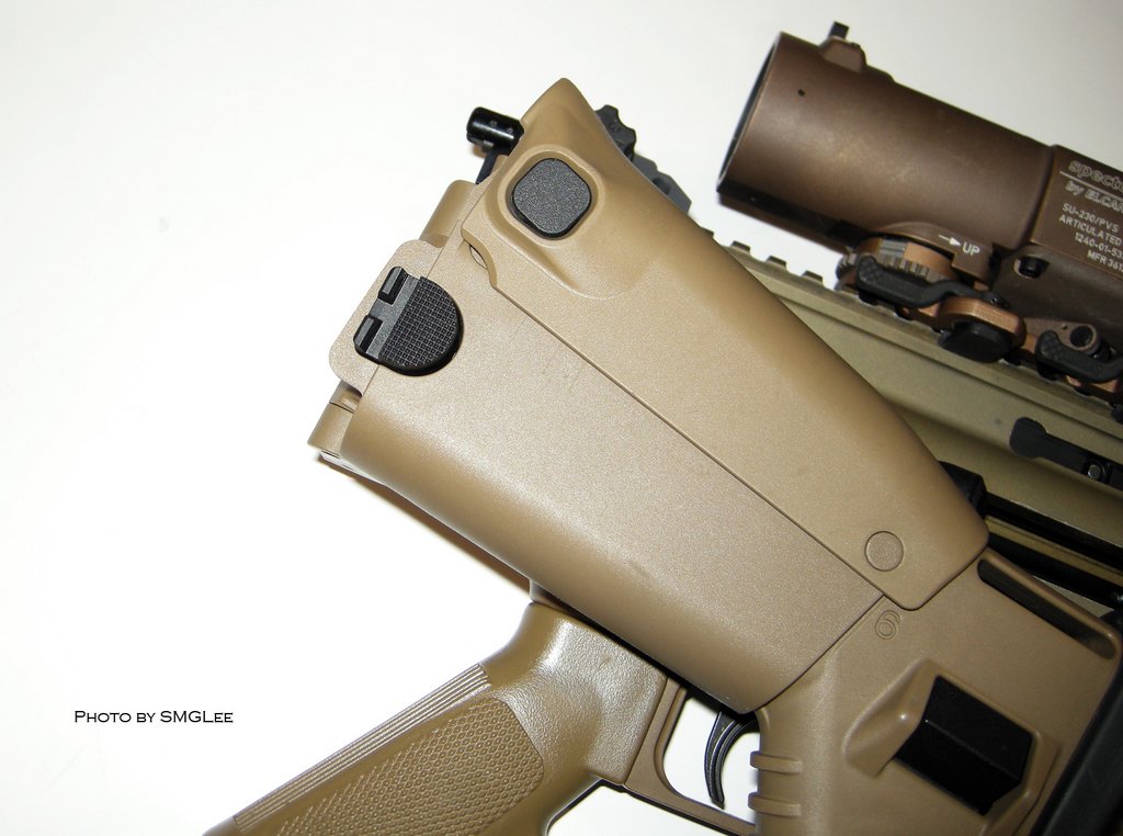 | 枪托折叠 | 21.25" (540 mm) | 25.0" (635mm) | 29.25" (743 mm) | 25.12" (638 mm) | 280" (711 mm) | 32.12" (816 mm) | |