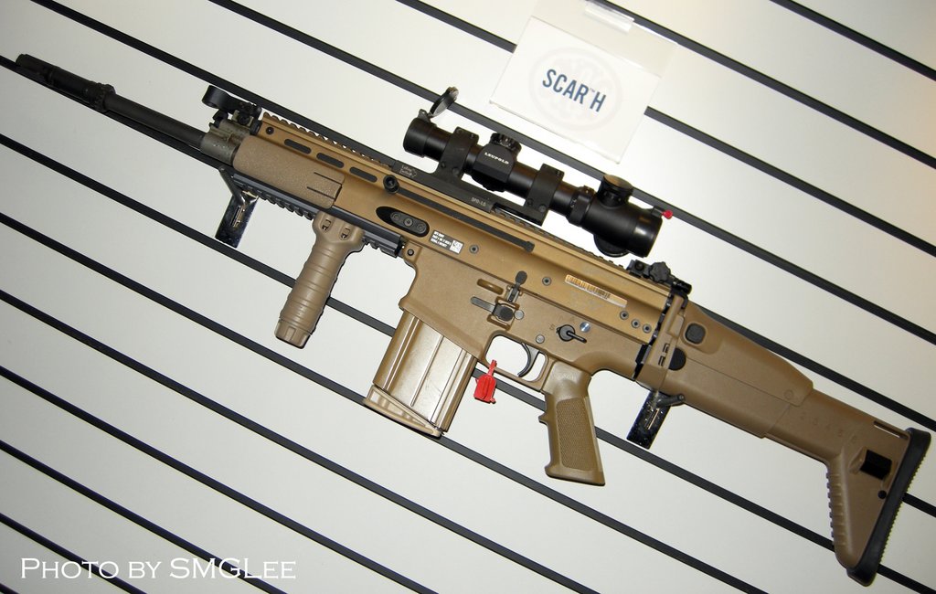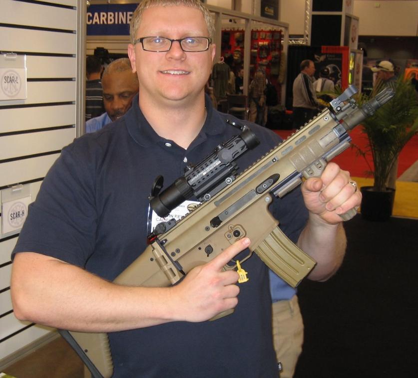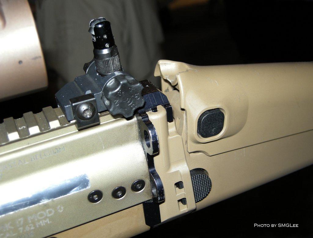 战地记者在2008年巴黎防务展上摸到的SCAR,他当时做了一个实验来验证SCAR的人机工效:闭上眼把枪抵肩平举作出射击姿势,然后睁开眼,发现眼睛已经处在瞄准线上了。