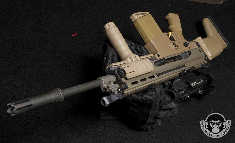 至于在其他的特种部队里,JSOC下面的部队在前几年据说也是比较推崇HK416,而比较抗拒SCAR,比如三角洲和绿色贝雷帽。但同样是陆军的第75游骑兵团已经开始试装SCAR,而在2010年初,在阿富汗也有一些绿色贝雷帽开始使用SCAR。SCAR比起HK416始终更优秀,只是HK416的操作和传统M16一模一样而矣。到了2010年中期,一共有850支Mk16和750支Mk17在多支特种部队中使用。