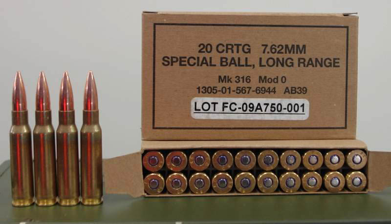 专门为Mk17 SSR研制的配套狙击弹Mk316 MOD0