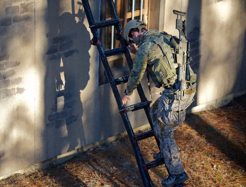 2012年7月在阿富汗的海豹狙击手,这把Mk20 SSR却是安装了伸缩/折叠枪托