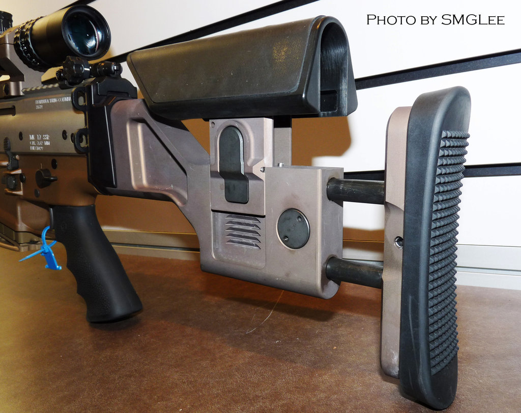 2014年美国陆军举行的狙击手比赛上,有选手使用的MK20 SSR,有些人是安装了MK17的折叠枪托
