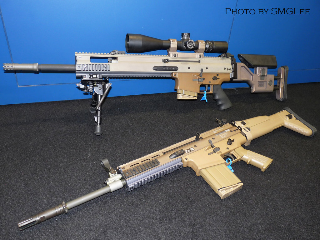 最初在欧洲推出的SCAR-H PR(Precision Rifle)采用比较短的护木来减重,但最终的版本与MK20 SSR没差别