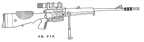 当北约统一标准步枪弹后,GIAT把FR-F1改成发射7.62mm NATO弹的狙击步枪,这两种口径的步枪外形没有明显区别的特征,但在机匣左侧分别标有7.5或7.62的记号。FR-F1除有两种基本型号为军用型外,还有两种民用变型枪:一种是FR-F1B运动步枪,另一种是猎枪型。7.62mm口径的FR-F1也装备了法军并服役多年,到1980年代中期以后,才逐步被新一代的FR-F2所取代,而FR-F1也于1980年正式停产。