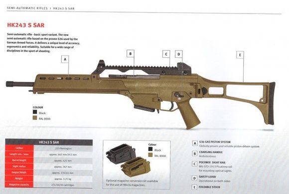 在2014年德国的IWA武器展上,HK公司展出了最新的G36民用型,但这种民用型不再称之为SL8,而是称为HK243和HK293。HK243是欧洲版,其实就是使用G36弹匣的型号,HK293则为美国版,其实就是换上了可以使用HK416弹匣(4179标准)的弹匣插座。
