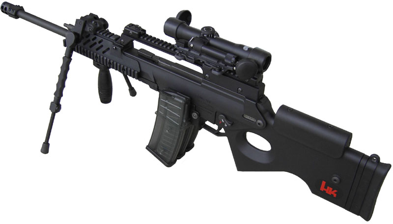SL8是HK公司在G36的基础上改装的运动步枪,5.56x45mm北约口径,不过主要是发射.223雷明顿弹。SL8和G36有着相同的结构,但在外观上有极大的不同,最明显的是SL8的外表是浅灰色或白色的。SL8只可半自动射击,配有带拇指孔的固定式枪托,贴腮板和托底板皆可调节。护木没有通风孔,也不能使用MG36的两脚架,没有刺刀座和消焰器。前、后的连接销改为螺丝杆。标准的瞄准具是安装在一个向前延伸的长桥形导轨座上的机械瞄具,导轨可方便地配置光学瞄准镜。机械瞄具也可换成与G36上的相同的紧凑型3倍光学瞄准镜但其没有提把。SL8可安装所有的G36瞄准具和前护木。