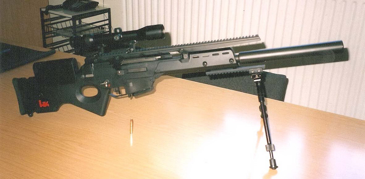 SL9 SD是HK公司的工程师们在SL8运动步枪的基础上开发的变型枪,据说是为了尝试发射一种新口径的枪弹——7.62×37mm亚音速弹,并在枪管连接上瑞士Brügger & Thomet公司的消音器,据说消声效果非常显著。